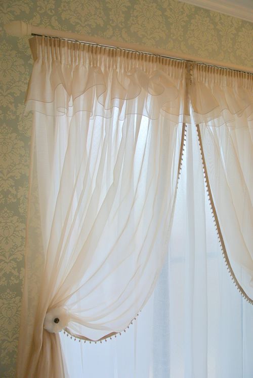 淡いブルーの壁紙と、幻想的な光を演出するダブルレースのカーテンで空間を包み込むことで、グランドピアノのブラックが、圧迫感ではなく、主役としての存在感と輝きを放つようになりました。